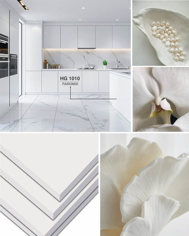 رنگ سفید، نماد تمیزی و سادگی است که فضایی روشن و دلنشین را به هر محیطی میبخشد دی اف های گلاس سفید فرامید با سطح براق و صیقلی خود، علاوه بر زیبایی، عمق و وسعت بیشتری به فضا میدهد. این متریال در طراحی کابینتها و کمدها، حس مدرن و مینیمالیستی را القا میکند و با انعکاس نور، محیط را زنده و شاداب میسازد @faromid_tejarat @faromid_tejarat کد:HG1010 .